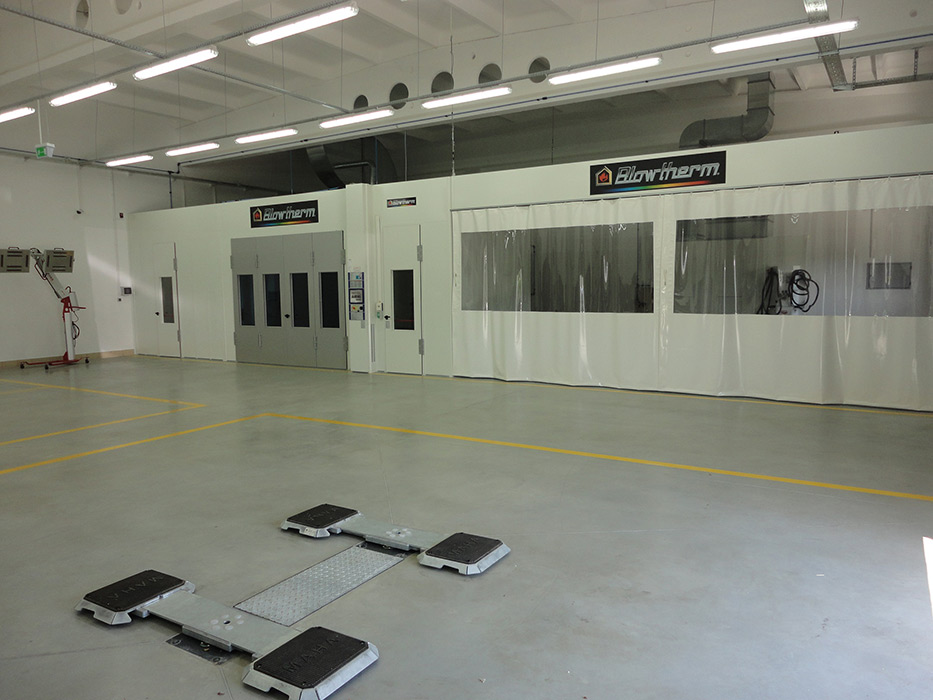 Linia technologiczna składa się z najnowszej generacji kabiny suszarniczo-lakierniczej, stanowisk przygotowawczych i pomieszczenia do przygotowywania lakierów.
